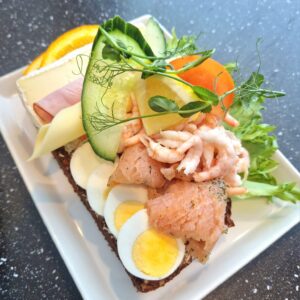 Ett stort utbud av bröd, bakverk och smörgåsar kompletteras här av så väl luncher som middagar. Vi kan även erbjuda ett glas öl eller vin till maten.